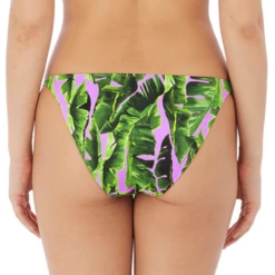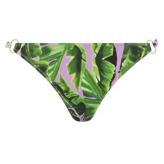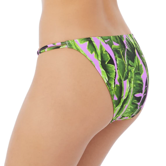 Der Jungle Oasis niedrig geschnittene Bikini Hose von Freya Swim ist in der Farbe Cassis erhältlich. Diese Bikini Hose hat ein sommerliches grünes Palmenmuster auf einem pastell-lila Hintergrund. Diese Hose ist mit goldenen Details auf der Vorderseite versehen. Kombinieren Sie dazu eines der Bikini Oberteile aus der Jungle Oasis Kollektion.