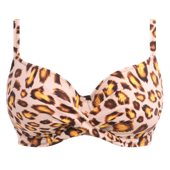 Das Kabini Oasis Full Cup Bikini Top von Fantasie Bademode ist in der Farbe Leopard erhältlich. Dieses Bikini Top ist mit einem wunderschönen Leopardenprint auf einem zartrosa Hintergrund versehen. Dieses trendige Oberteil bedeckt den Busen vollständig und zentriert ihn schön. Kombinieren Sie das Oberteil mit einem der Kabini Oasis Bikini Hosen.