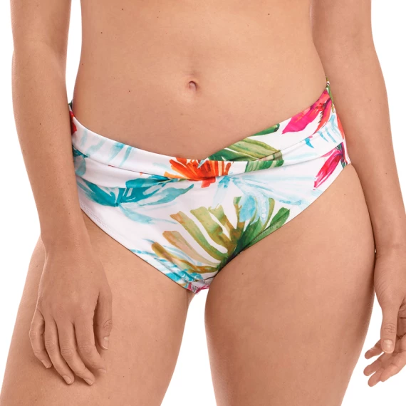 Die Kiawah Island Bikini Hose von Fantasie Bademode ist in der Farbe Aquamarin erhältlich. Die Kiawah Island Kollektion ist eine wahre Farbexplosion. Die Bikini Hose hat einen farbenfrohen Print mit tropischen Blumen und ist ein echter Hingucker am Strand. Kombinieren Sie die Bikini Hose mit einem Kiawah Island Bikini Oberteil für einen kompletten Look.