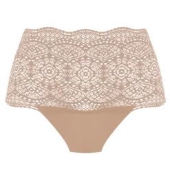 Der Lace Ease Slip von Fantasie ist in der Farbe Natural Beige erhältlich. Dieser beigefarbene Slip sitzt schön hoch auf der Taille, was ideal ist, um einen möglichen Bauch zu kaschieren. Der Slip hat eine elegante Spitze am oberen Rand. Dieser Slip ist in einer Einheitsgröße erhältlich und wird Ihnen gut passen, wenn Sie die Kleidergrößen S bis XL tragen. Der Slip kann mit jedem beliebigen BH kombiniert werden. Ein perfektes Basic für Ihre Dessous-Schublade!