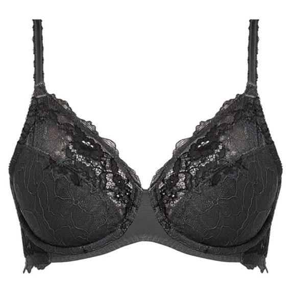 Der Lace Perfection Bügel BH von Wacoal in der Farbe Charcoal. Dieser Bh ist mit toller Blumenstickerei verziert. Dies verleiht dem Bh eine luxuriöse Note! Die Körbchen formen den Busen natürlich und bieten guten Halt.