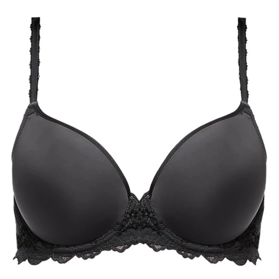 Der Lace Perfection Vorgeformter BH von Wacoal in der Farbe Charcoal. Dieser Bh hat graue, glatte Körbchen. Seitlich und am Rücken ist der Bh mit toller Blumenstickerei verziert. Dies verleiht dem Bh eine luxuriöse Note! Die Träger des BHs können auf unterschiedliche Weise getragen werden: Gerade, überkreuz oder als Neckholder.