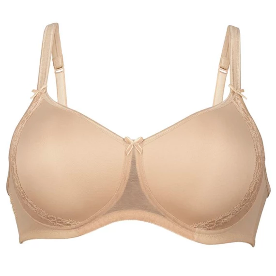Der Lace Rose Soft BH von Rosa Faia ist in der Farbe Desert erhältlich. Die Cups des BHs sind seitlich mit Spitze versehen. Die Mitte des Cups ist glatt, so dass es unter enger Oberbekleidung nicht zieht. Dieser BH ist perfekt für Frauen, die es vorziehen, Armbänder ohne Bügel zu tragen, aber nicht auf Unterstützung verzichten wollen.