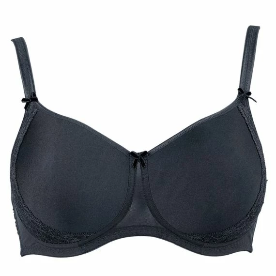 Der Lace Rose Soft Bh von Rosa Faia in der Farbe Schwarz. Die Körbchen dieses BHs sind an der Seite mit Spitze verziert. Die Mitte des Körbchens ist glatt, dadurch zeichent der Bh unter enganliegender Kleidung nicht ab. Dieser Bh ist äußerst geeignet für Frauen die lieber einen BH ohne Bügle tragen aber keine Kompromisse im Bereich von Unterstützung machen wollen.
