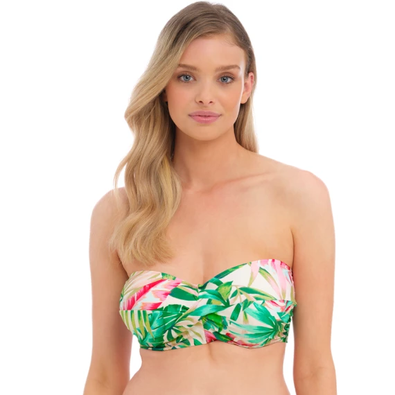 Das Langkawi Bandeau Bikinitop von Fantasie Bademode ist in der Farbe Sobert erhältlich. Dieses Bikinitop hat einen Print aus verschiedenen tropischen Blättern. Die Farben Waldgrün und Aquagrün erstrecken sich über einen sanften Hintergrund. Dieses trendige Oberteil verleiht dem Busen eine schöne runde Form und hat abnehmbare Träger. Dieses Bikinioberteil hat eine verspielte Wendung zwischen den Cups. Kombinieren Sie es mit einer der passenden Unterhosen für einen sommerlichen Look.