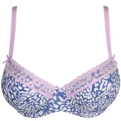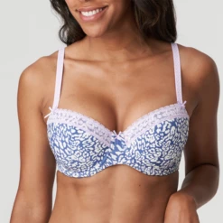 Der Lari Balconette BH von PrimaDonna Twist ist in der Farbe Pastel Denim erhältlich. Dieser glatte Balconette BH hat Schaumstoff-Cups und einen trendigen Tierprint, der sich auf den Trägern fortsetzt. Die feinen goldenen Nieten an den schlichten Schulterträgern verleihen Ihrem Look einen zusätzlichen Glanz. Pastel Denim ist eine Kombination aus Denimblau und hellem Pastelllila. Ein trendiger Animalprint, ein feiner Stoff im Denim-Look und Träger, die sich sehen lassen können: PrimaDonna Twist Lari hat alles. Diese Sets sind auch unter all Ihren Sommerkleidern völlig glatt und bieten Ihrem volleren Busen die bestmögliche Unterstützung.
