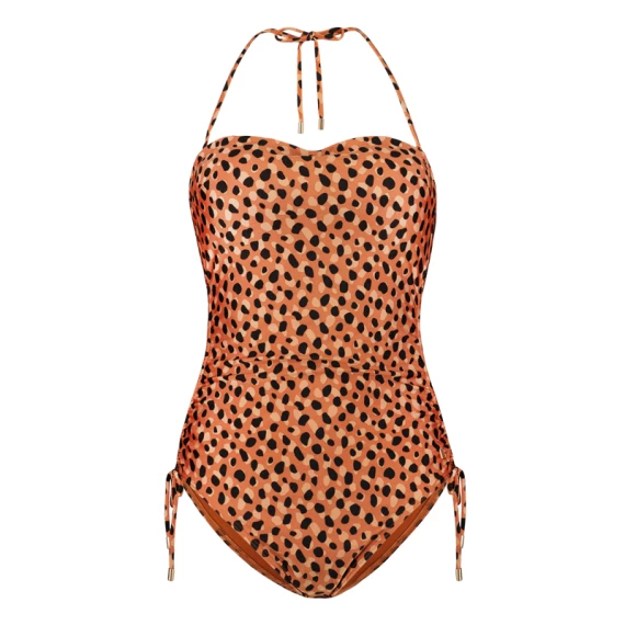 Der Leopard Spots Badeanzug von Beachlife ist in einem verspielten Leoparden Muster erhältlich. Dieser Badeanzug hat weiche Cups und einen versteckten Bügel für zusätzlichen Halt. Der Badeanzug kann mit geraden Trägern, trägerlos und als Neckholder getragen werden. Die Schleifen an beiden Seiten lassen sich straff ziehen, wodurch sich der Po erhöht und die Beine länger wirken. Kombinieren Sie den Badeanzug mit den Accessoires aus der Serie Leopard Spots. For those wild at heart!