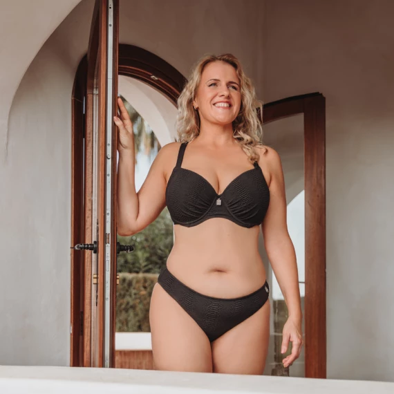 Das Lizzard vorgeformte Balconette Bikini Oberteil von Annadiva Swim ist in der Farbe Black erhältlich. Eine neue Farbe für diese schöne Kollektion. Trendige unifarbene schwarze Bademode aus hochwertigem, strukturiertem Stoff. Die festen, vorgeformten Körbchen heben und zentrieren Ihren Busen optimal. Das Balconette Modell verleiht Ihnen ein dezentes Dekolleté. I never want summer to end!