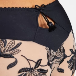 Der Lovessence Slip ist in der Farbe Noir erhältlich. Dieser schöne Slip ist mit einer üppigen Blumenstickerei verziert. Der Slip hat einen Ausschnitt auf der Rückseite und ist mit einem kleinen goldfarbenen Detail auf der Vorderseite versehen. Die Slips sind mit einem Baumwollzwickel versehen. Lovessence ist die perfekte Kombination aus ikonisch und sexy. Kombinieren Sie diese Slips mit einem passenden BH aus der Lovessence-Kollektion für ein komplettes Set!