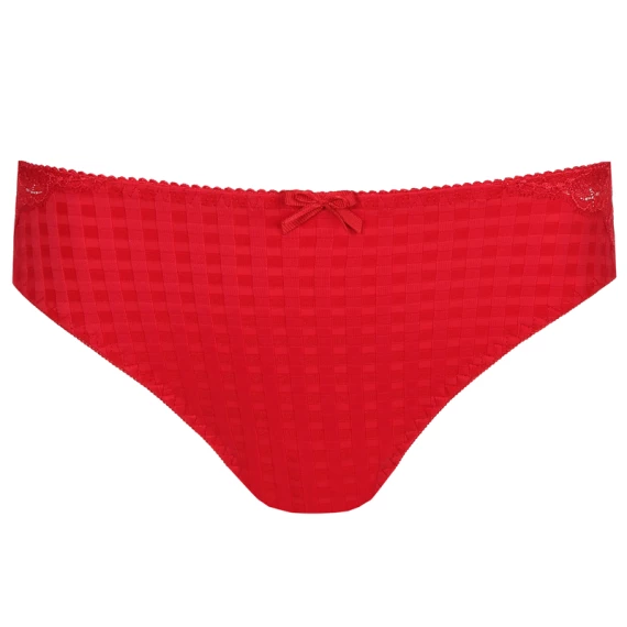 Der Madison Rio Slip von PrimaDonna ist in der Farbe Scarlet erhältlich. Dieser rote Slip ist aus kariertem Stoff gefertigt und an den Seiten und am Gesäß mit Spitze verziert. Der Slip ist an den Seiten recht hoch geschnitten und lässt die Beine optisch länger erscheinen. Die Madison Serie ist bei den PrimaDonna Fans sehr beliebt. Die Kombination aus Karos und Spitze verleiht dieser Serie einen jungen und eleganten Look!