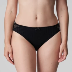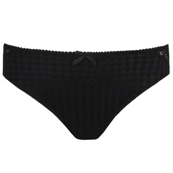 Der Madison Slip von PrimaDonna ist in schwarz gehalten. Dieser schwarze Slip ist aus kariertem Stoff gefertigt und an den Seiten und am Gesäß mit Spitze verziert. Der Slip ist an den Seiten recht hoch geschnitten und lässt die Beine optisch länger erscheinen. Die Madison Serie ist bei den PrimaDonna Fans sehr beliebt. Die Kombination aus Karos und Spitze verleiht dieser Serie einen jungen und eleganten Look!