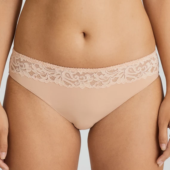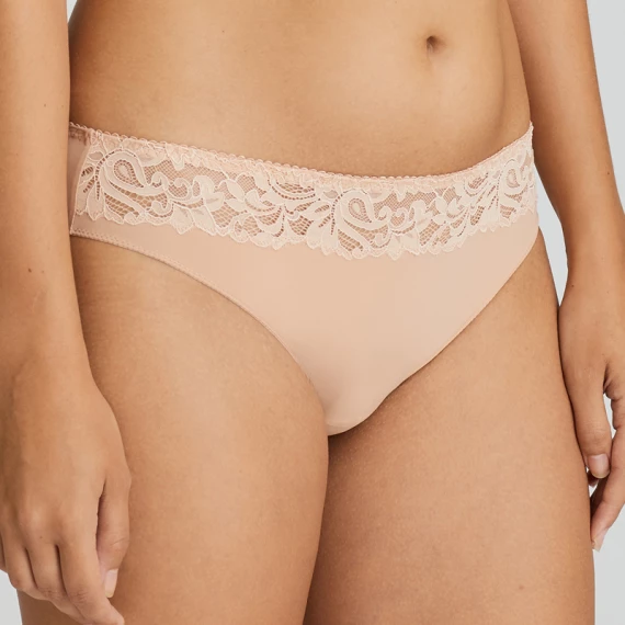 Der Magnolia Slip von PrimaDonna ist in der Farbe Light Tan erhältlich. Der beigefarbene Slip ist superweich und hat auf der Vorderseite einen Streifen mit einer schönen Blumen Stickerei. Die Rückseite ist einfarbig. Dieser zeitlose Slip lässt sich perfekt mit dem Bügel-BH Magnolia kombinieren.