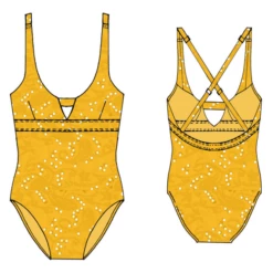 Der Mango Paradise Badeanzug von Annadiva Swim ist in der Farbe Yellow erhältlich. Der luftige Stickerei Stoff liegt in diesem Sommer voll im Trend. Die sonnige Farbe kommt am Strand besonders gut zur Geltung. Das macht Sie sofort happy! Das plunge Modell schafft ein tiefes Dekolleté und die gepolsterten Cups geben Ihren Busen eine schöne runde Form. Der Badeanzug ist an den Beinen etwas höher geschnitten, für eine perfekte Passform. Kombinieren Sie den Badeanzug mit einem der Annadiva Swim Accessoires. Forever in love with the sun!
