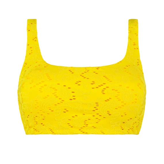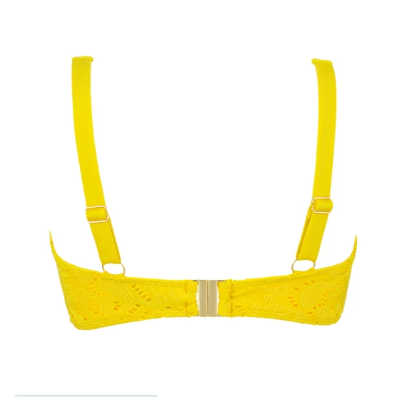 Das Mango Paradise Bralette Bikini Oberteil von Annadiva Swim ist in der Farbe Yellow erhältlich. Der luftige Stickerei Stoff liegt in diesem Sommer voll im Trend. Die sonnige Farbe kommt am Strand besonders gut zur Geltung. Das macht Sie sofort happy! Die Bikiniträger geben zusätzlichen Halt, so dass Ihr Bikini den ganzen Tag lang optimal sitzt. Kombinieren Sie dieses Oberteil mit einem der Bikini Hosen aus der Mango Paradise-Kollektion. Forever in love with the sun!