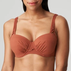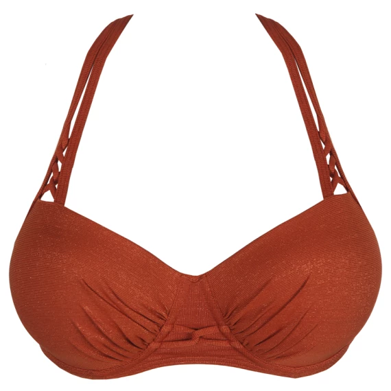 Das Balconette Bikini Oberteil Manuia von PrimaDonna Swim ist in der Farbe Burnt Amber erhältlich. Bikini Oberteil mit trendigen Cut-outs an den Trägern und in der vorderen Mitte. Der dezent glänzende Stoff fängt das Sonnenlicht ein. Dieses trendige Bikini Oberteil hat die gleiche Passform wie die PrimaDonna-BHs und bietet den gleichen Komfort und Halt. Die festen Mousse-Cups heben und zentrieren den Busen. Burnt Amber ist eine warme, rostige Farbe mit einem subtilen Glanz.