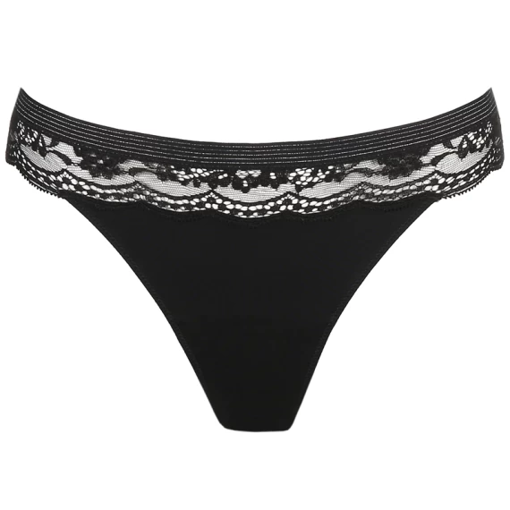 Der Margot String von Marie Jo in Schwarz. Dieser schwarze String hat vorne und hinten einen verführerischen Rand aus Spitze. Zeitloses Schwarz für einen klassischen Look. Kombinieren Sie diese Hotpants mit den passenden BHs aus der Margot Kollektion.