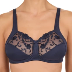 Der Moments BH ohne Bügel von Felina ist in der Farbe Admiral erhältlich. Dieser dunkelblaue BH besteht aus einem halbtransparenten Stoff mit klassischer Stickerei auf der Oberseite der Cups. Herrlich weich und auch sehr bequem. Der BH sitzt gut und bietet Komfort und Halt. Kombinieren Sie diesen BH mit den Slips aus der Serie Moments!