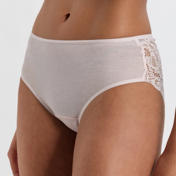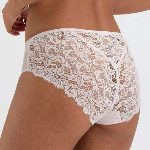 Suchen Sie einen schönen hellrosa Slip mit aufregender Spitze? Shoppen Sie jetzt den Moments Slip von Hanro im Webshop von Annadiva!