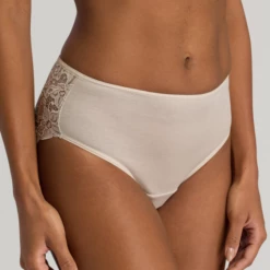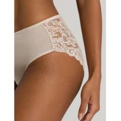 Der Moments Slip von Hanro ist in der Farbe Dune erhältlich. Dieses beigefarbene Slip hat eine schöne Spitze auf der Rückseite. Um Ihren Look zu vervollständigen, können Sie den Slip mit einem der Hanro BHs kombinieren.