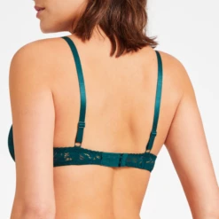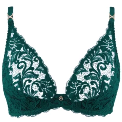Der Mon Bijou Plunge BH von Aubade ist in der Farbe Emeraude erhältlich. Dieser smaragdgrüne BH ist komplett mit einer schönen floralen Stickerei verziert. Zwischen den Cups befindet sich ein funkelnder Anhänger. Die Ränder der Cups und ein Teil der Träger sind mit elastischer Spitze verarbeitet. Dieser BH hat einen verführerisch tiefen Ausschnitt und die Körbchen zentrieren Ihren Busen schön. Kombinieren Sie diesen sinnlichen Bügel BH mit einem der Slips aus der Kollektion Mon Bijou.