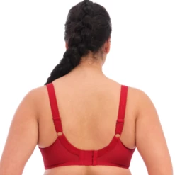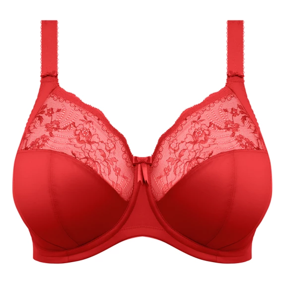 Der Morgan Bügel BH von Elomi ist in der Farbe Haute Red erhältlich. Dieser rote BH hat ein dezentes Blumen Muster auf der Oberseite der Cups. Dank der dreiteiligen Körbchen und des festen, dehnbaren Stoffs, der in das BH Bündchen eingearbeitet ist, bietet der BH eine optimale Unterstützung für den Busen. Auf diese Weise werden nicht nur der Po, sondern auch die Seiten des Busens gut gestützt. An den Trägern und zwischen den Körbchen befinden sich süße Schleifen, die diesen BH abrunden!