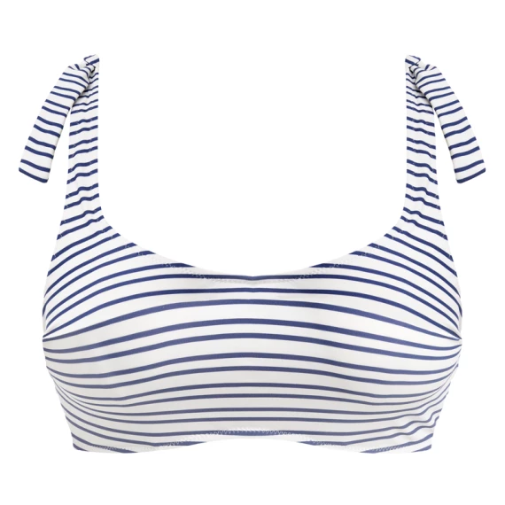 Das New Shores Bralette Bikini Oberteil von Freya Swim ist in der Farbe Ink erhältlich. Dieses Bikini Oberteil hat ein wunderschönes blaues und hellweißes Streifen-Design und gibt Ihren Busen eine schöne runde Form! Die Träger haben niedliche Matrosenschleifen, die auch abgenommen werden können. Die Falten an den Seiten der Körbchen verleihen Form und Volumen. Kombinieren Sie das New Shores Bikini Oberteil mit einem der passenden Bikini Hosen aus der Kollektion!