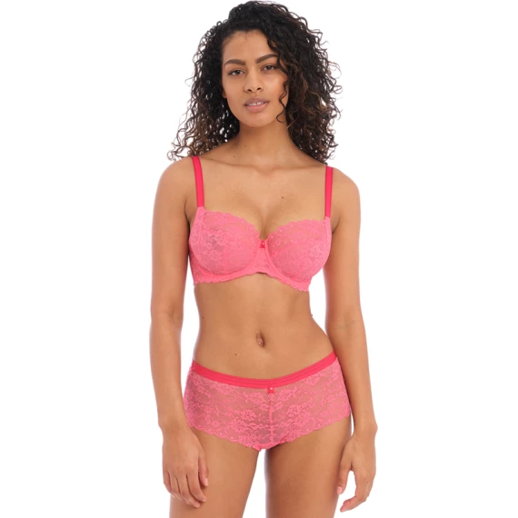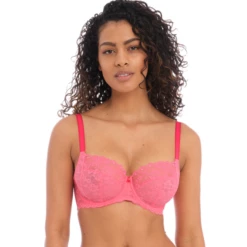 Der Offbeat Bügel BH von Freya ist in der Farbe Pink erhältlich. Die Cups dieses schönen rosa BHs sind aus halbtransparenter, floraler Spitze gefertigt. Zwischen den Cups befindet sich ein dezentes Detail, das den BH abrundet! Kombinieren Sie mit einem der Offbeat Slips.