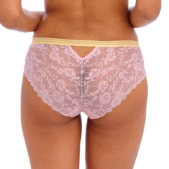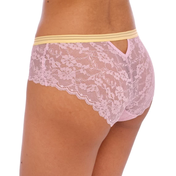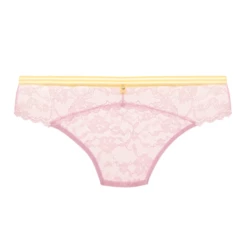 Der Offbeat Slip von Freya ist in der Farbe Macaron erhältlich. Dieser hellrosa Slip ist aus durchscheinender sexy Spitze gefertigt. Am oberen Rand befindet sich eine gelbe Paspel mit einem schönen Detail. Kombinieren Sie diesen Slip mit einem der BHs aus der Offbeat Kollektion!