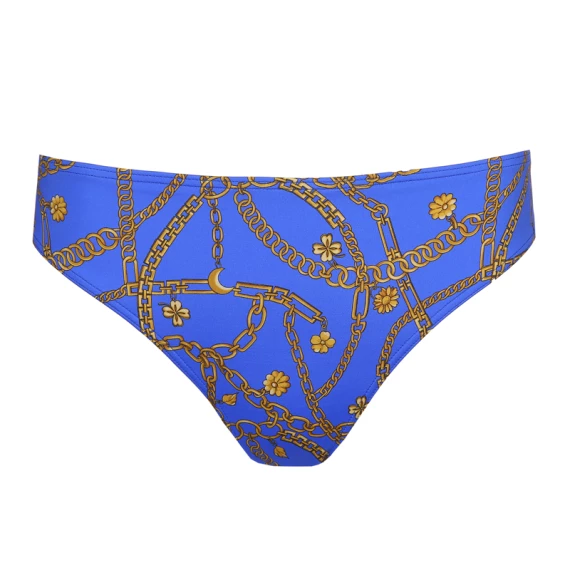 Der Olbia rio Slip von PrimaDonna Swim ist in der Farbe Electric Blue erhältlich. Diese blaue Bikini Hose ist mit goldenen Elementen im Stil der Neunziger Jahre versehen. Diese Bikini Hose ist an den Seiten hoch geschnitten, so dass Ihre Beine optisch länger wirken. Trendige Bademode im sommerlichen Neunzigerjahre-Look! Kombinieren Sie das Bikini Hose mit einem der Bikini Tops aus der Serie Olbia.