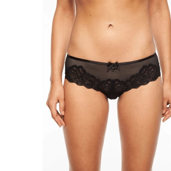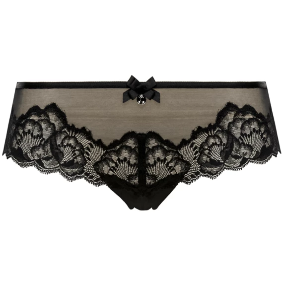 Der Orangerie Shorts von Chantelle ist in der Farbe Black erhältlich. Dieser schwarze Slip ist aus halbtransparentem Stoff gefertigt und mit Spitze in edlem Blumen-Design versehen. Die Rückseite ist aus einem unifarbenen schwarzen Stoff gefertigt. Die Vorderseite ist mit einer niedlichen Schleife und einem kleinen Charme versehen.