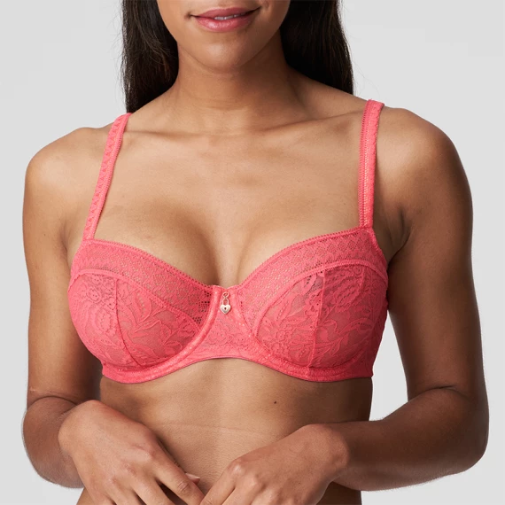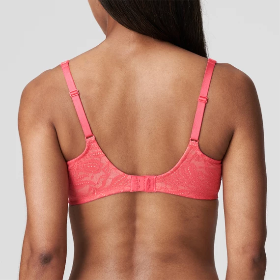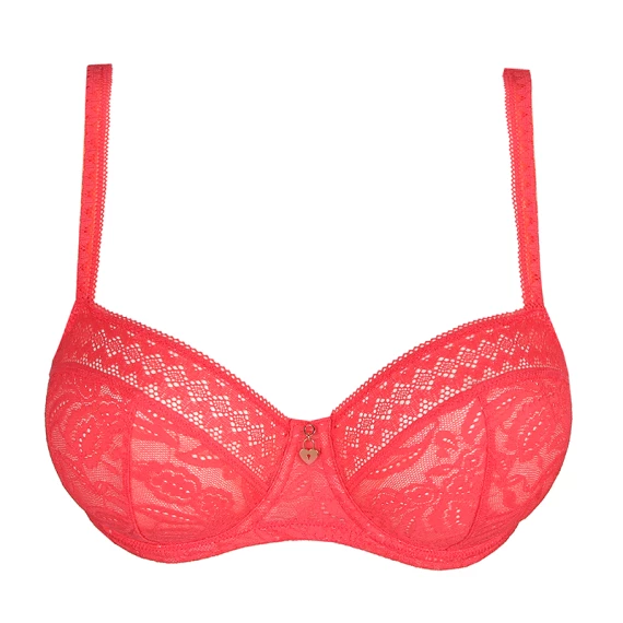 Balconette BH aus Spitze in der Farbe Tagada. Der BH besteht aus Allover-Spitze mit floralem Muster. Ein grafisches Spitzenmotiv umrahmt Ihr Dekolleté und verläuft elegant bis zu den Trägern.