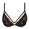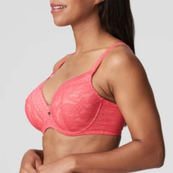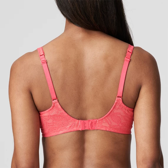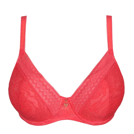 Herzförmiger BH aus Spitze in der Farbe Tagada. Der BH besteht aus Allover-Spitze mit floralem Muster. Ein grafisches Spitzenmotiv umrahmt Ihr Dekolleté und verläuft elegant bis zu den Trägern.