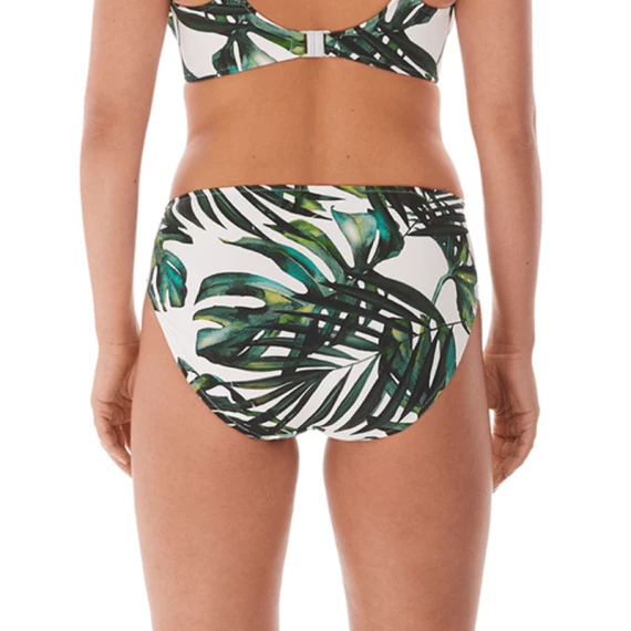 Die Palm Valley Bikinihose von Fantasie in der Farbe Fern. Die Bikinihose hat ein Muster mit grünen Blättern auf weißem Grund. Kombinieren Sie diese Hose mit einem der Bikinioberteilen aus der Palm Valley Serie.