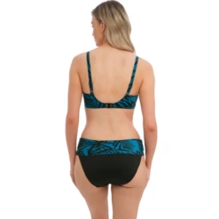 Das Palmetto Bay Full Cup Bikinitop von Fantasie Bademode ist in der Farbe Zen Blue erhältlich. Dieses blaue Bikinitop ist mit einem schönen schwarzen Palmenmuster bedruckt. Das Top hat gerippte Cups, die den Busen schmeicheln und den nötigen Halt geben. Kombinieren Sie das Bikinioberteil mit einem der passenden Unterteile aus der Palmetto Bay Kollektion.