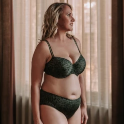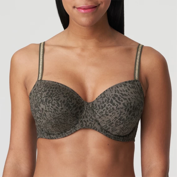 Der Petit Bijou Balconette BH von PrimaDonna Twist ist in der Farbe Reptile erhältlich. Dieser dunkelgrüne BH hat einen coolen Animal-Print. Träger mit einem goldenen Streifen vervollständigen den sportlichen Glam-Look. Die festen Mousse-Cups geben Ihrem Busen perfekten Halt und heben und zentrieren ihn. Der Stoff ist völlig glatt und daher unter enger Kleidung unsichtbar. Reptile ist ein cooler Reptil-Print in Khaki: ein trendiger neutraler Farbton, der in Ihrer Dessous-Schublade nicht fehlen darf!
