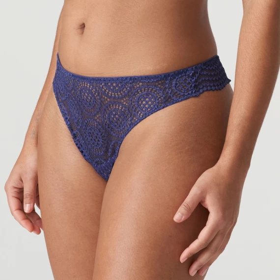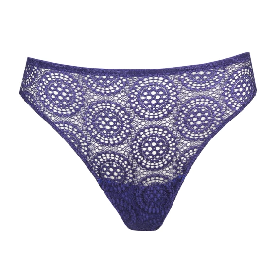 Der Petit Paris String von PrimaDonna Twist kommt in der Farbe French Indigo. Stellen Sie sich vor, Sie wären in Frankreich mit diesem bezaubernden lila String. Der String ist komplett aus stilvoller Spitze in einem runden Mandala-Muster gefertigt. Der String ist durchsichtig, was für einen sinnlichen Look sorgt. Kombinieren Sie diesen String mit einem der Petit Paris-BHs.