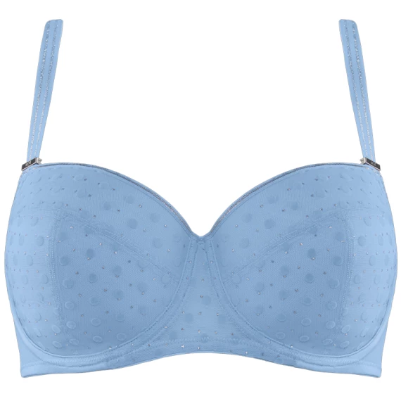 Der Petit Point Balconette BH von Marlies Dekkers ist in der Farbe Light Blue & Silver erhältlich. Die Cups dieses verführerischen BHs sind mit einem blauen Polka-Dot-Print mit silberfarbenen Details verziert. Am Rande des BHs und der Träger sind silberne Ziernähte angebracht. Dieser BH ist für alle Arten von Busen geeignet. Die Cups bieten zusätzlichen Halt und der Bügel umschließt den kompletten Busen, wodurch ein dezentes Dekolleté entsteht.