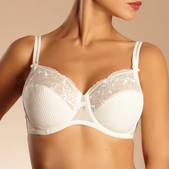 Der Pont Neuf Bügel BH von Chantelle ist in der Farbe Ivory erhältlich. Dieser wundervolle, elfenbeinfarbene BH hat ein dezentes Streifen Muster auf den Cups und ist am oberen Teil mit Mesh Stoff und Spitze verarbeitet. Der Bügel BH verleiht Ihrem Busen eine schöne und natürliche Form.