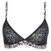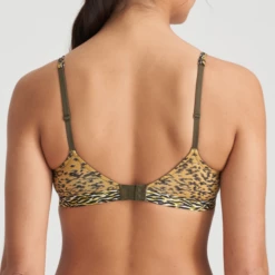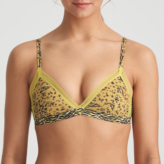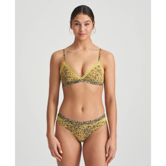 Der Triangel BH Rege von Marie Jo ist in der Farbe Savannah erhältlich. Der coole Leopardenprint kombiniert mit Zebramuster sorgt für einen anspruchsvollen Look. Dieser BH hat keine Bügel und trägt sich dank der weichen Cups besonders angenehm. Dieses Modell ohne Bügel bietet Ihnen einen noch nie dagewesenen Tragekomfort. Die Cups sind im oberen Bereich mit einem gelben Spitzenstreifen verziert. Die doppelten Spaghettiträger verleihen diesem BH eine verspielte Note und gehen in dunkelgrüne Träger über. Savannah ist eine Modefarbe, die Sie in den Großstadtdschungel entführt. Kombinieren Sie diesen Bralette mit einem der Rege Slips.