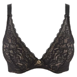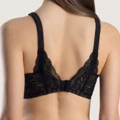 Der Rosessence Komfort Plunge BH von Aubade ist in der Farbe Noir erhältlich. Dieser schöne BH ist komplett mit sexy schwarzer Spitze überzogen. Zwischen den Cups befindet sich ein goldenes Detail. Die Ränder der Cups und der untere Teil der Schulterträger sind mit elastischer Spitze versehen. Kombinieren Sie diesen schönen, bequemen Plunge BH mit einem der Slips aus der Rosessence Kollektion.