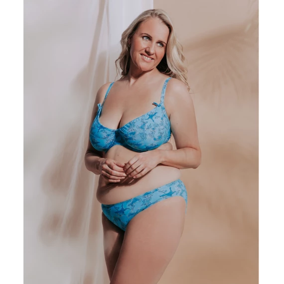 Das Safari Bügel Bikini Oberteil von Annadiva Swim ist in der Farbe Azul erhältlich. Dieses Bikini Oberteil hat ein verspieltes Tier Motiv auf einem schönen türkisfarbenen Hintergrund. Die Bügel des Oberteils heben und zentrieren Ihren Busen für eine schöne, volle Form. Die Schleifen an der Oberseite der Cups können nach Belieben gebunden werden. Lassen Sie sich von der Safari Kollektion an einen warmen Strandtag entführen.