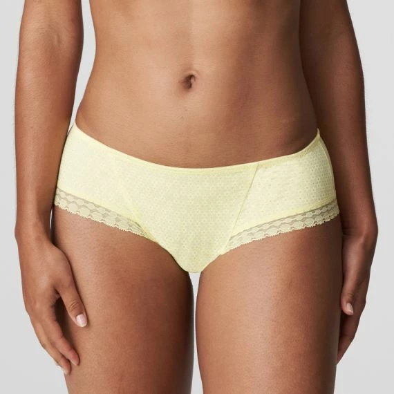 Die Sapri Hotpants von PrimaDonna Twist ist in der Farbe Starlight erhältlich. Diese hellgelben Hotpants sind aus einem weichen Stoff mit einem sommerlichen Retro-Motiv gefertigt. Eine feine Spitze an den Beinen und am Gesäß sorgt dafür, dass die Hotpants nicht einschneiden. Starlight ist ein zartgelber Retro-Print mit einem goldenen Schimmer.