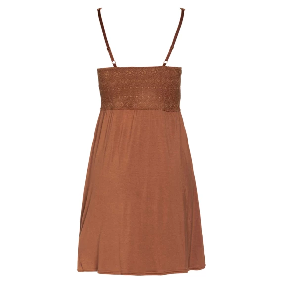 Das Sarah Uni Nachtkleidchen von Essenza ist in der Farbe Walnut erhältlich. Dieses warme walnussfarbene Nachthemd ist perfekt für romantische Abende. Das Kleid ist oben sinnlich mit Spitze verarbeitet und fächert sich nach unten hin schön auf. Eleganz pur! Die Träger gehen am Rücken in verstellbare Spaghettiträger über. Das Kleid ist aus Modal gefertigt, einem pflanzlichen Material, das aus dem Zellstoff von Buchen hergestellt wird, die in speziellen, nachhaltig bewirtschafteten Wäldern in Europa wachsen. Genauso wichtig ist, dass sich der Stoff super weich anfühlt, eine glatte Passform hat und atmungsaktiv ist.