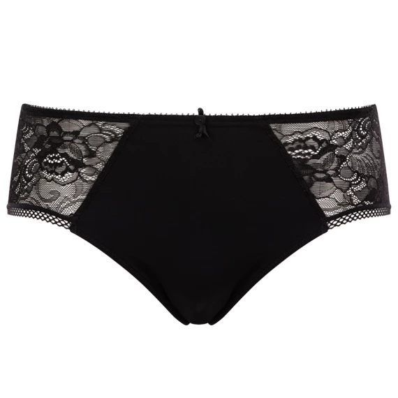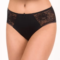 Die Secret Garden Taillienslip von Conturelle ist in der Farbe Black erhältlich. Die flachen Nähte verhindern Abdrücke auf der Haut. Die halbtransparente florale Spitze an den Seitenteilen sorgt für einen verführerischen Look.