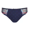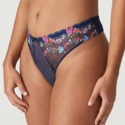 Der Sedaine String von PrimaDonna Dessous ist in der Farbe Water Blue erhältlich. Dieser String ist aus luxuriöser, elastischer Spitze gefertigt und an den Seiten mit bezaubernden Blumen in leuchtenden Farben verziert. Dieser schöne String ist leicht transparent und hat auf der Vorderseite aufgestickte blaue Punkte, die für einen verspielten Touch sorgen. Der String bedeckt kaum das Gesäß und ist am Rücken einfarbig blau. Die Schnur wird mit einer Schleife abgeschlossen. Kombinieren Sie diesen String mit einem der Sedaine BHs.