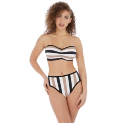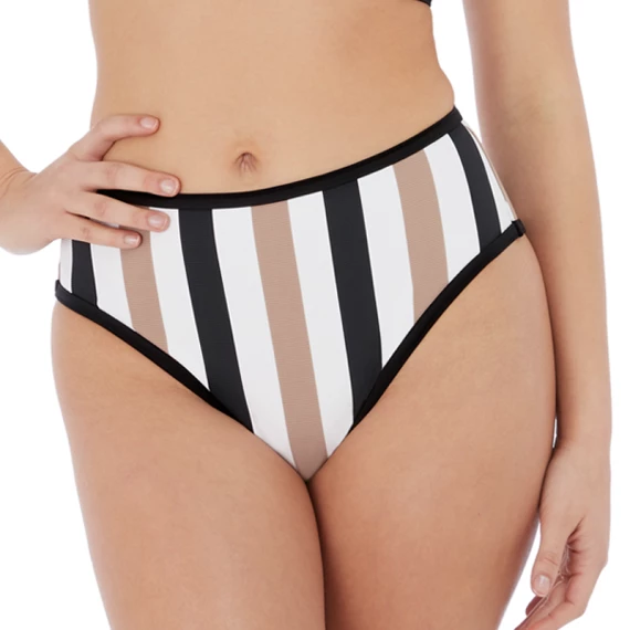 Der Set Sail Hohe Bikinihose von Freya Swim ist in der Farbe Multi erhältlich. Dieses Hohe Bikinihose hat einen weißen Untergrund mit trendigen Streifen in Schwarz und Nude. Der Rippstoff verleiht diesem Bikini eine verspielte Note. An den Kanten dieser Hose befinden sich verdeckte Nähte für eine nahtlose Taille. Diese Hose sitzt etwas höher in der Taille, was ideal ist, um einen möglichen Bauch zu kaschieren. Kombinieren Sie mit einem der Bikini Oberteile für einen sommerlichen Look am Meer!