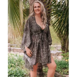 Der Snake Kaftan von Annadiva Swim ist in der Farbe Olive erhältlich. Dieser olivgrüne Kaftan mit Animal-Print passt perfekt zum restlichen Teil der Snake Kollektion. Der Kaftan fällt über das Knie und kann in der Taille gebunden werden. Für einen endlosen Sommer!