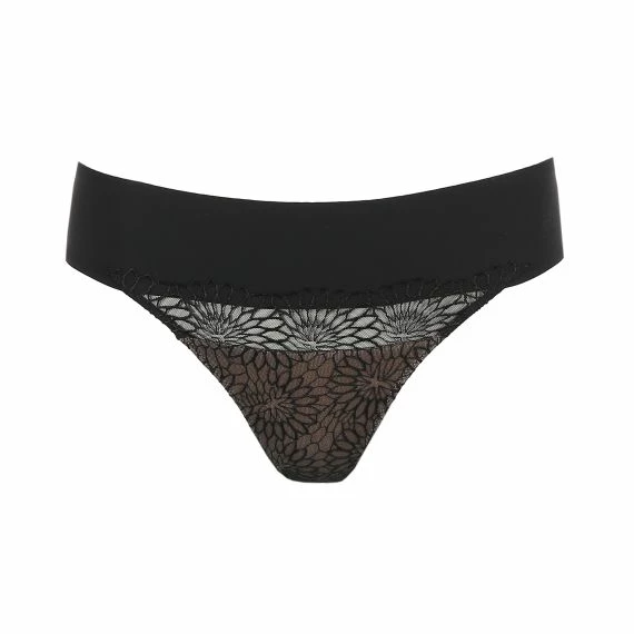 Der Sophora String von PrimaDonna in der Farbe Black. Dieser schwarze hat auf der Vorderseite einen Streifen aus hautfarbenem Tüll und ist mit schwarzer Stickerei verziert. Fühlen Sie sich sexy!