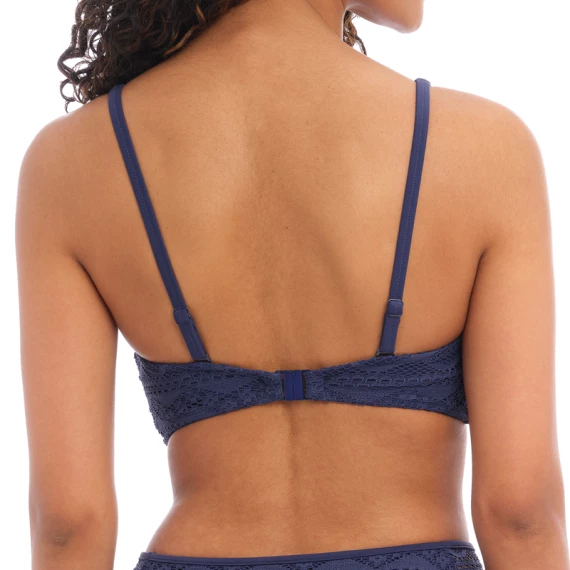Das Sundance Bralette Bikinitop von Freya Bademode in der Farbe Denim . Dieses blaue Bikinitop ist aus stilvoller Häkelarbeit mit schönen Mustern gefertigt. Der Bügel verleiht Ihren Busen eine schöne runde Form. Die Falten in der Mitte vervollständigen das Oberteil! Sie können die Schulterträger gerade oder quer tragen. Kombinieren Sie das Oberteil mit einem der Sundance Unterteile!