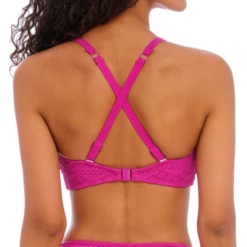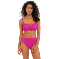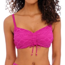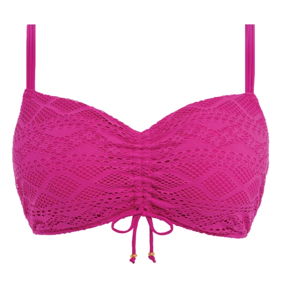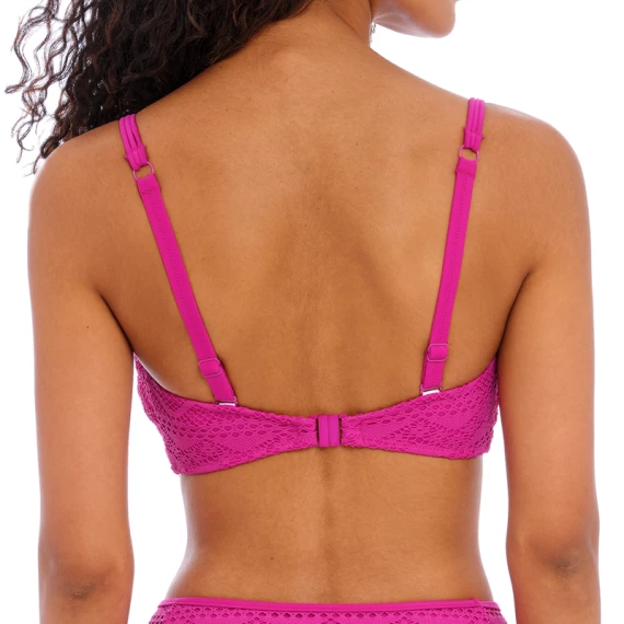 Das Sundance Bralette Bikinitop von Freya Bademode ist in der Farbe Orchid erhältlich. Dieses rosafarbene Bikinitop ist aus stilvoller Häkelarbeit mit schönen Mustern gefertigt. Der Bügel verleiht Ihren Busen eine schöne runde Form. Die Plisseefalten in der Mitte vervollständigen das Top! Sie können die Schulterträger gerade oder quer tragen. Kombinieren Sie das Top mit einem der Sundance Bikini Hosen!